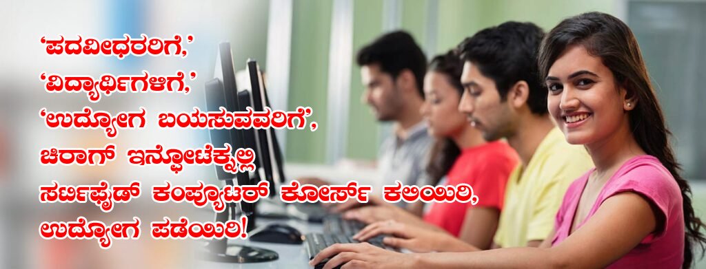 ಉದ್ಯೋಗ ಬಯಸುವ ಎಲ್ಲಾ ವಿದ್ಯಾವಂತ ಯುವಕ–ಯುವತಿಯರಿಗೆ, ಕೇಂದ್ರ/ರಾಜ್ಯ ಸರ್ಕಾರಿ ಉದ್ಯೋಗಗಳಿಗೆ ಕಂಪ್ಯೂಟರ್ ತರಬೇತಿ ಅವಶ್ಯಕವಾಗಿದ್ದು, ಕರ್ನಾಟಕ ಸರ್ಕಾರದ ಕಿಯೋನಿಕ್ಸ್ ಸಂಸ್ಥೆಯ ಕಂಪ್ಯೂಟರ್ ತರಬೇತಿ ಪಡೆದು ಪ್ರಮಾಣ ಪತ್ರವನ್ನು (GOVERNMENT CERTIFICATE) ಪಡೆದುಕೊಂಡವರಿಗೆ ಉದ್ಯೋಗಾವಕಾಶ ಲಭಿಸುತ್ತದೆ. ಕೂಡಲೇ ಚಿರಾಗ್ ಇನ್ಫೋಟೆಕ್ – ಕಿಯೋನಿಕ್ಸ್ ಪ್ರಾಂಚೈಸ್ ಸೆಂಟರ್ ತರಬೇತಿ ಕೇಂದ್ರಕ್ಕೆ ಭೇಟಿ ನೀಡಿ.