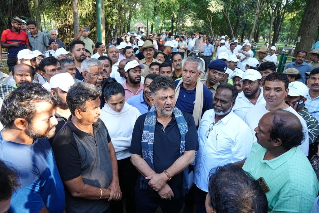 ಬೆಂಗಳೂರು, ಅಕ್ಟೋಬರ್ 12: ಬೆಂಗಳೂರು ನಡಿಗೆ ಕಾರ್ಯಕ್ರಮದ ಅಂಗವಾಗಿ ಉಪಮುಖ್ಯಮಂತ್ರಿ ಡಿ.ಕೆ. ಶಿವಕುಮಾರ್ ಅವರು ಇಂದು ಮುಂಜಾನೆ ಮತ್ತಿಕೆರೆಯ ಜೆಪಿ ಪಾರ್ಕ್ಗೆ ಭೇಟಿ ನೀಡಿ ವಾಯುವಿಹಾರಕ್ಕೆ ಬಂದ ಜನರೊಂದಿಗೆ ಸಂವಾದ ನಡೆಸಿದರು. ಆದರೆ ಈ ಸಂದರ್ಭ ಆರ್.ಆರ್. ನಗರ ಶಾಸಕ ಮುನಿರತ್ನ ಅವರ ಆಗಮನದಿಂದ ಸ್ಥಳದಲ್ಲೇ ಹೈಡ್ರಾಮಾ ನಡೆಯಿತು.