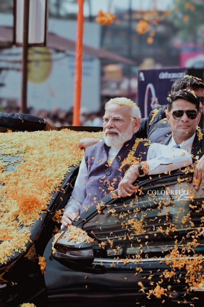 ಉಡುಪಿ: ಪ್ರಧಾನಿ ನರೇಂದ್ರ ಮೋದಿ ಇಂದು ಉಡುಪಿಗೆ ಆಗಮಿಸಿದ್ದು, ಕೃಷ್ಣನಾಡು ಹಬ್ಬದ ವಾತಾವರಣ ಪಡೆದುಕೊಂಡಿತ್ತು. ಮಂಗಳೂರು ವಿಮಾನ ನಿಲ್ದಾಣಕ್ಕೆ ಬೆಳಗ್ಗೆ ಬಂದಿಳಿದ ಪ್ರಧಾನಿ, ಅಲ್ಲಿಂದ ನೇರವಾಗಿ ಹೆಲಿಕಾಪ್ಟರ್ ಮೂಲಕ ಉಡುಪಿಗೆ ಪ್ರಯಾಣ ಬೆಳೆಸಿ, ಬೆಳಗ್ಗೆ 11 ಗಂಟೆಯ ಸುಮಾರಿಗೆ ಉಡುಪಿ ಹೆಲಿಪ್ಯಾಡ್ಗೆ ಆಗಮಿಸಿದರು. ಹೆಲಿಪ್ಯಾಡ್ನಿಂದ ಮಠದವರೆಗೆ ಸುಮಾರು 1.8 ಕಿಲೋಮೀಟರ್ಗಳ ರೋಡ್ ಶೋ ನಡೆಸಿದ ಪ್ರಧಾನಿಗೆ ಸಾವಿರಾರು ಜನರು ಭರ್ಜರಿ ಸ್ವಾಗತ ನೀಡಿದರು. ರಸ್ತೆ ಬದಿಯಲ್ಲಿ ಕಿಕ್ಕಿರಿದು ನಿಂತ ಜನಸ್ತೋಮ, ಸಾಂಸ್ಕೃತಿಕ ವಾದ್ಯಗಳ ಮಧುರ ನಾದ ಹಾಗೂ “ಮೋದಿ! ಮೋದಿ!” ಘೋಷಣೆ ಮಧ್ಯೆ ಪ್ರಧಾನಿಯವರ ಪ್ರಯಾಣ ಗಮನ ಸೆಳೆದಿತು.