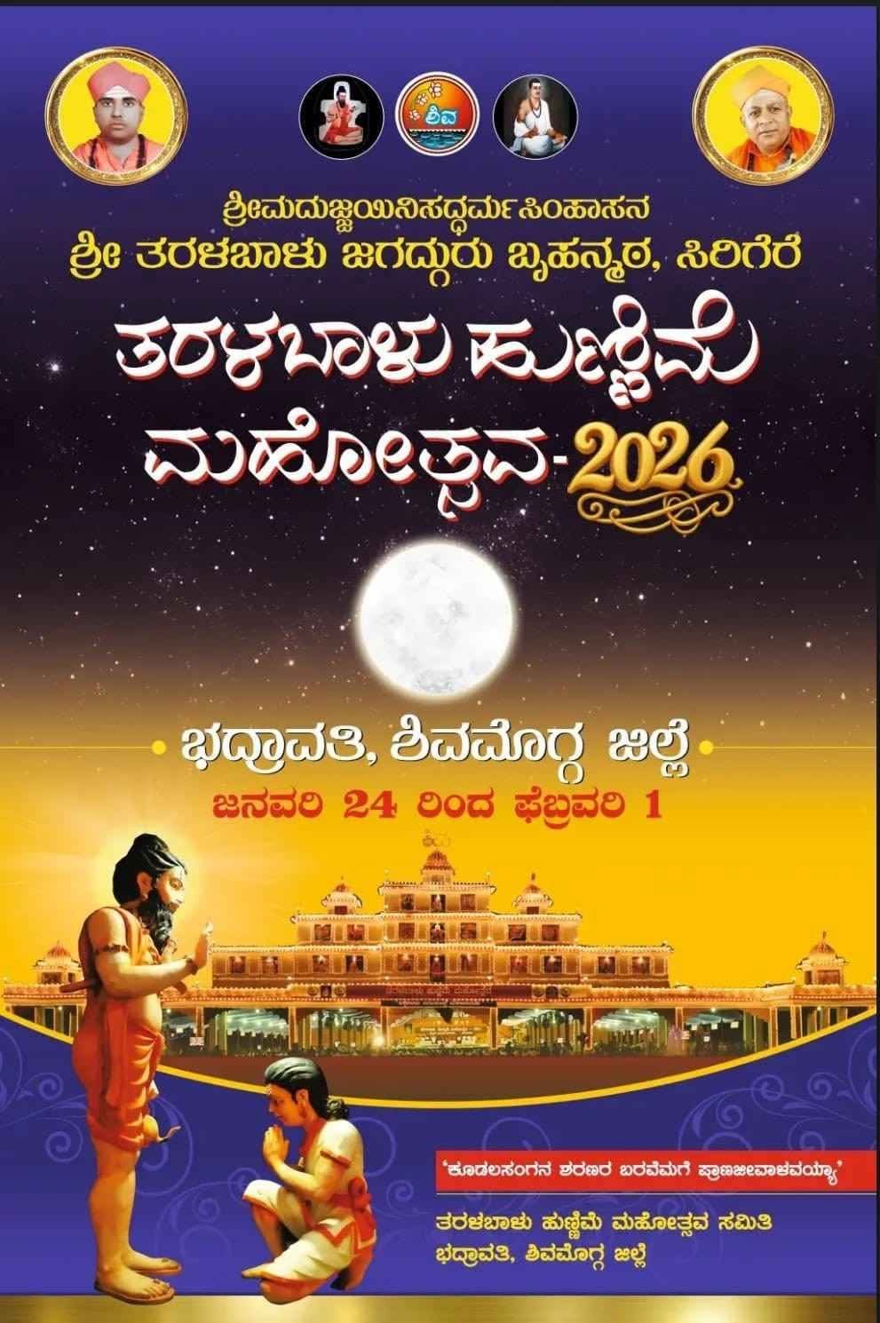 ಹನುಮಂತ ಮತ್ತು ರಾಮನ ಸಂಭಾಷಣೆಯನ್ನು ಉದಾಹರಿಸಿದ ಅವರು, “ದೇವರನ್ನು ಮರೆಯುವುದೇ ವಿಪತ್ತು, ದೇವರನ್ನು ಸ್ಮರಿಸುವುದೇ ಸಂಪತ್ತು ಎಂದು ಹನುಮಂತನು ಹೇಳುತ್ತಾನೆ. ವೀರಶೈವ ಲಿಂಗಾಯತರಿಗೆ ಮನೆ ಇಲ್ಲದಿರಬಹುದು, ಅನ್ನ ಇಲ್ಲದಿರಬಹುದು, ಬಟ್ಟೆ ಇಲ್ಲದಿರಬಹುದು. ಆದರೆ ಕೊರಳಲ್ಲಿ ಲಿಂಗ ಇದ್ದರೆ, ಗುರುವಿನಲ್ಲಿ ಭಕ್ತಿ ಇದ್ದರೆ, ಜಂಗಮರಿಗೆ ಗೌರವ ಇದ್ದರೆ ಅವರಷ್ಟು ಶ್ರೀಮಂತರು ಯಾರು ಇಲ್ಲ” ಎಂದು ಹೇಳಿದರು.