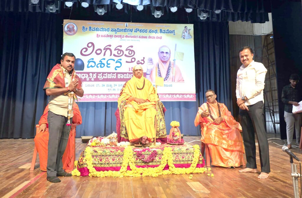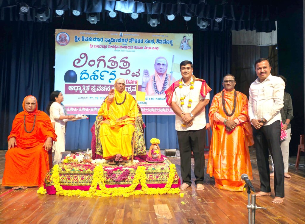 ಶಿವಮೊಗ್ಗ: ನಗರದ ಅಂಬೇಡ್ಕರ್ ಭವನದಲ್ಲಿ ಶ್ರೀ ಶಿವಕುಮಾರ ಸ್ವಾಮೀಜಿಗಳ ನೌಕರರ ಸಂಘ ಹಾಗೂ ಶ್ರೀ ಬಸವೇಶ್ವರ ವೀರಶೈವ ಲಿಂಗಾಯತ ಸಮಾಜದ ಆಶ್ರಯದಲ್ಲಿ ಆಯೋಜಿಸಲಾಗಿದ್ದ ‘ಲಿಂಗತತ್ವದರ್ಶನ’ ಆಧ್ಯಾತ್ಮಿಕ ಪ್ರವಚನ ಕಾರ್ಯಕ್ರಮದ ಎರಡನೇ ದಿನ ಕಾಶಿಯ ಜಂಗಮವಾಡಿ ಮಠದ ಶ್ರೀ ಮತ್ ಕಾಶಿ ಜ್ಞಾನ ಸಿಂಹಾಸನಾಧೀಶ್ವರರಾದ ಶ್ರೀ ಶ್ರೀ ಶ್ರೀ 1008 ಜಗದ್ಗುರು ವಿದ್ಯಾವಾಚಸ್ಪತಿ ಡಾ. ಚಂದ್ರಶೇಖರ ಶಿವಾಚಾರ್ಯ ಭಗವತ್ಪಾದರು ವೀರಶೈವ ಲಿಂಗಾಯತ ಧರ್ಮದ ತಾತ್ವಿಕ ಆಳ, ಆಚರಣೆಗಳ ಅರ್ಥ ಮತ್ತು ಮುಂದಿನ ಪೀಳಿಗೆಗೆ ಅದರ ಹೊಣೆಗಾರಿಕೆಯನ್ನು ವಿವರವಾಗಿ ಪ್ರತಿಪಾದಿಸಿದರು.