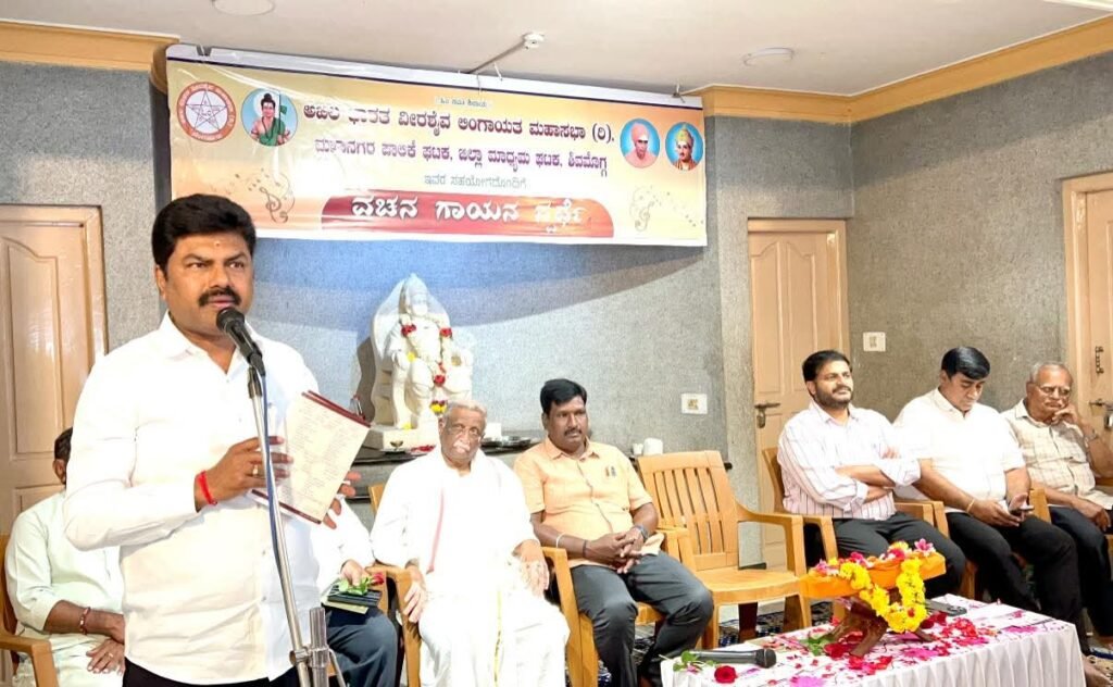 ಶಿವಮೊಗ್ಗ: ಅಖಿಲ ಭಾರತ ವೀರಶೈವ ಲಿಂಗಾಯತ ಮಹಾಸಭಾ (ರಿ), ಮಹಾನಗರ ಪಾಲಿಕೆ ಘಟಕ ಹಾಗೂ ಜಿಲ್ಲಾ ಮಾಧ್ಯಮ ಘಟಕ, ಶಿವಮೊಗ್ಗ ಇವರ ಸಂಯುಕ್ತಾಶ್ರಯದಲ್ಲಿ ಆಯೋಜಿಸಲಾಗಿರುವ ವಚನ ಗಾಯನ ಸ್ಪರ್ಧೆಗೆ ಇಂದು ಸಂಸದರಾದ ಶ್ರೀ ಬಿ.ವೈ. ರಾಘವೇಂದ್ರ ಅವರು ಅಧಿಕೃತವಾಗಿ ಚಾಲನೆ ನೀಡಿದರು.