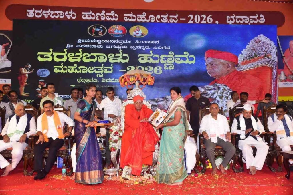 ಭದ್ರಾವತಿ: ಭಕ್ತಿ, ತ್ಯಾಗ ಮತ್ತು ಮಾನವೀಯತೆಯ ಮಹಾ ಸಂಭ್ರಮವಾಗಿ ಭದ್ರಾವತಿ ಪಟ್ಟಣದಲ್ಲಿ ಜನವರಿ 24ರಿಂದ ಫೆಬ್ರವರಿ 1ರವರೆಗೆ ಆಯೋಜನೆಗೊಂಡಿದ್ದ ತರಳಬಾಳು ಹುಣ್ಣಿಮೆ ಮಹೋತ್ಸವವು ಐದು ಲಕ್ಷಕ್ಕೂ ಅಧಿಕ ಭಕ್ತಾದಿಗಳ ಅಪೂರ್ವ ಸಮಾಗಮದೊಂದಿಗೆ ಭಕ್ತಿಯ ಮಹಾಪರ್ವವಾಗಿ ಅದ್ದೂರಿಯಾಗಿ ಸಂಪನ್ನಗೊಂಡಿತು.