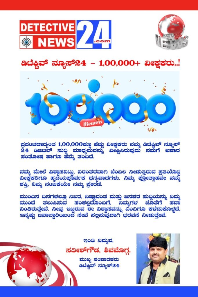 🎉 ಡಿಟೆಕ್ಟಿವ್ ನ್ಯೂಸ್24 – 1,00,000+ ವೀಕ್ಷಕರು..! 🎉