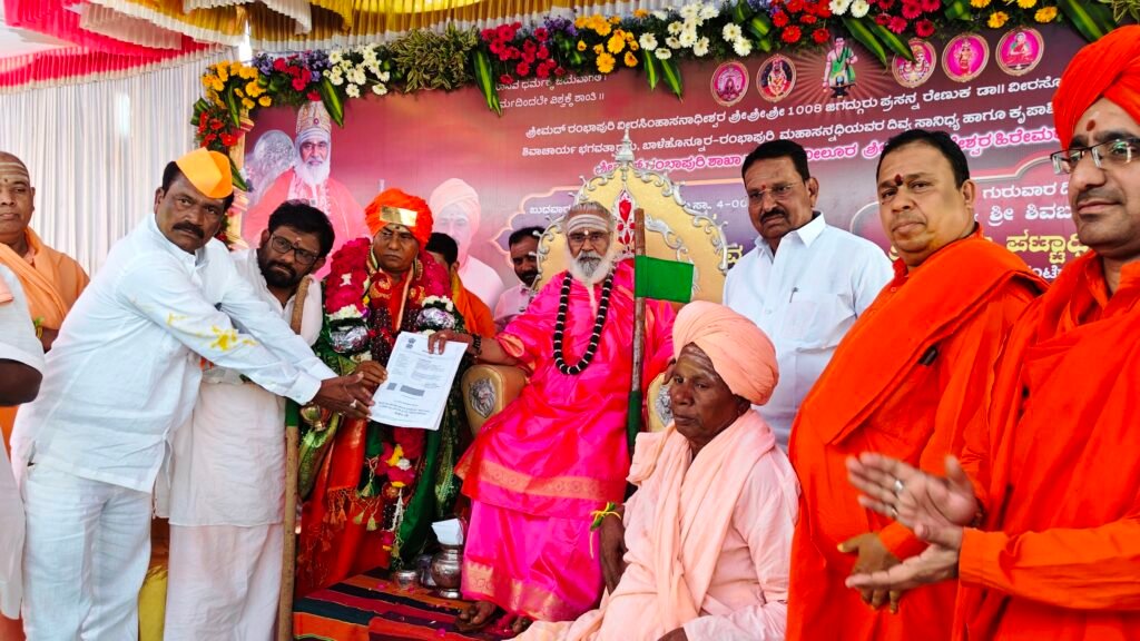 ನೂತನ ಪೀಠಾಧಿಪತಿಗಳಿಗೆ ರಂಭಾಪುರಿ ಪೀಠದಿಂದ ರೇಷ್ಮೆ ಪೀತಾಂಬರ, ಸ್ಮರಣಿಕೆ ಮತ್ತು ಪುಷ್ಪಾರ್ಚನೆ ಸಲ್ಲಿಸಿ ಜಗದ್ಗುರುಗಳು ಶುಭ ಹಾರೈಸಿದರು.