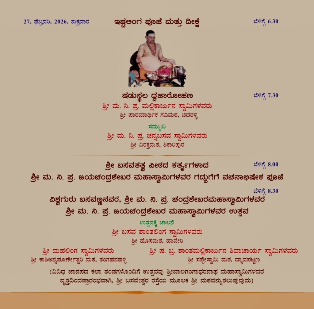 ಶ್ರೀ ಮ.ನಿ.ಪ್ರ. ಚಂದ್ರಶೇಖರ ಮಹಾಸ್ವಾಮಿಗಳವರ 171ನೇ ಜಯಂತಿ, ಶ್ರೀ ಮ.ನಿ.ಪ್ರ. ಜಯಚಂದ್ರಶೇಖರ ಮಹಾಸ್ವಾಮಿಗಳವರ 30ನೇ ಸಂಸ್ಮರಣೆ