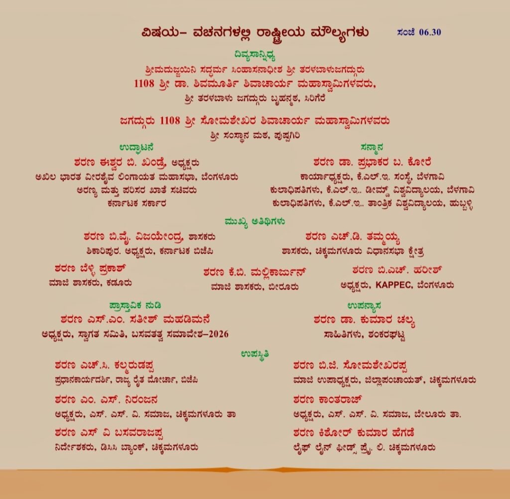 ಬಸವತತ್ವದ ಸಂದೇಶಗಳು ಮತ್ತೊಮ್ಮೆ ಸಮಾಜದಲ್ಲಿ ಪ್ರಜ್ವಲಿಸಲಿ, ಶರಣ ಸಂಸ್ಕೃತಿ ಹೊಸ ಪೀಳಿಗೆಯ ಹೃದಯಗಳಲ್ಲಿ ಬೇರೂರಲಿ ಎಂಬ ಮಹೋದ್ದೇಶದೊಂದಿಗೆ ನಡೆಯಲಿರುವ ಈ ಸುವರ್ಣ ಮಹೋತ್ಸವವು ಚಿಕ್ಕಮಗಳೂರಿನ ಧಾರ್ಮಿಕ ಹಾಗೂ ಸಾಂಸ್ಕೃತಿಕ ಇತಿಹಾಸದಲ್ಲಿ ಸ್ಮರಣೀಯ ಅಧ್ಯಾಯವಾಗಲಿದೆ.
