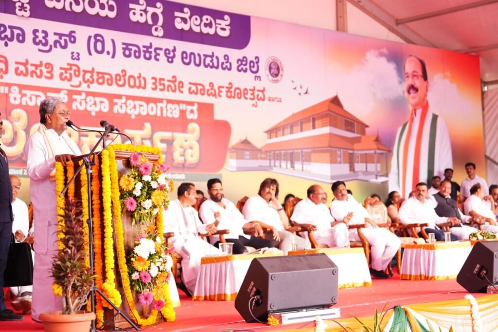 ಕಾರ್ಕಳ: ಕಾರ್ಕಳ ಪಟ್ಟಣದಲ್ಲಿ ನಡೆದ ಕಿಸಾನ್ ಸಭಾ ಟ್ರಸ್ಟ್ನ ಮಹಾತ್ಮ ಗಾಂಧಿ ವಸತಿ ಪ್ರೌಢಶಾಲೆಯ 35ನೇ ವರ್ಷದ ವಾರ್ಷಿಕೋತ್ಸವ ಸಮಾರಂಭವನ್ನು ಉದ್ಘಾಟಿಸಿ ಮುಖ್ಯಮಂತ್ರಿ ಸಿದ್ದರಾಮಯ್ಯ ಅವರು ಶಿಕ್ಷಣ, ಸಮಾನತೆ ಮತ್ತು ಸಮಾಜಮುಖಿ ಆಡಳಿತದ ಕುರಿತು ಮಾತನಾಡಿದರು.
