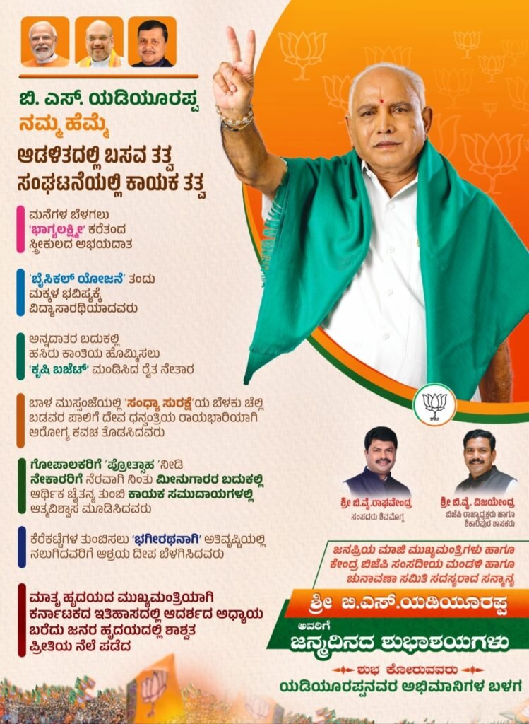 ಕರ್ನಾಟಕ ರಾಜಕೀಯ ಇತಿಹಾಸದಲ್ಲಿ ಅಚ್ಚಳಿಯದ ಗುರುತು ಮೂಡಿಸಿದ ಅಪ್ರತಿಮ ಹೋರಾಟಗಾರ – ಅದುವೇ ಬಿ.ಎಸ್. ಯಡಿಯೂರಪ್ಪ.