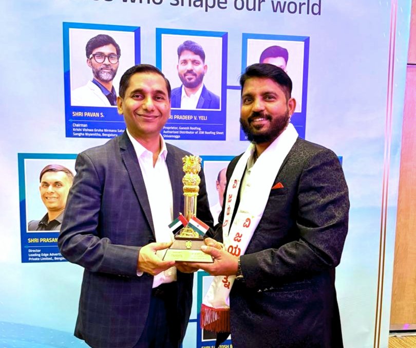 ದುಬೈ: ಉದ್ಯಮ ಕ್ಷೇತ್ರದಲ್ಲಿನ ಸಾಧನೆ ಮತ್ತು ಸಮಾಜಮುಖಿ ಕಾರ್ಯಗಳ ಮೂಲಕ ವಿಶಿಷ್ಟ ಗುರುತಿಸಿಕೊಂಡಿರುವ ಶಿವಮೊಗ್ಗ ಜಿಲ್ಲೆಯ ಉದ್ಯಮಿ ಪ್ರದೀಪ್ ವಿ. ಎಲಿ ಅವರಿಗೆ ದುಬೈನಲ್ಲಿ ನಡೆದ ಅದ್ದೂರಿ ಸಮಾರಂಭದಲ್ಲಿ “ವಿಜಯರತ್ನ ಇಂಟರ್ನ್ಯಾಷನಲ್ 2026” ಪ್ರಶಸ್ತಿ ನೀಡಿ ಗೌರವಿಸಲಾಯಿತು.