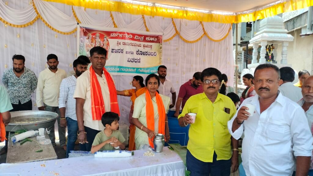 ಇನ್ನೂ, ಶಿವಮೊಗ್ಗ ನಗರದ ಶ್ರೀ ಶನೇಶ್ವರ ದೇವಸ್ಥಾನದ ಮುಂಭಾಗದಲ್ಲಿ ದುರ್ಗಿಗುಡಿ ಮಿತ್ರಕೂಟ ಇವರಿಂದ ಸಾರ್ವಜನಿಕರಿಗೆ ಪಾನಕ ಮತ್ತು ಕೋಸಂಬರಿ ವಿತರಣೆ ಮಾಡಲಾಗಿದ್ದು, ಬಿಸಿಲಿನ ತಾಪಮಾನ ನಡುವೆಯೂ ಭಕ್ತರಿಗೆ ತಂಪು ನೀಡುವ ಈ ಸೇವೆ ಜನರಿಂದ ಪ್ರಶಂಸೆಗೆ ಪಾತ್ರವಾಯಿತು.