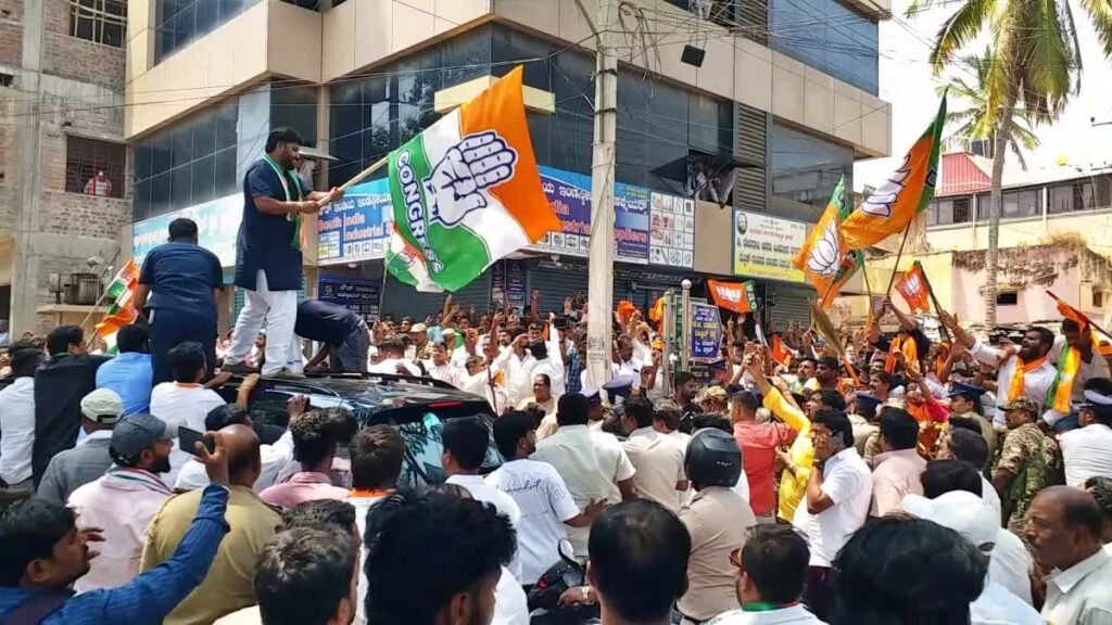 ಕೆಬಿ ಬಡಾವಣೆಯಲ್ಲಿರುವ ಬಿಜೆಪಿ ಕಚೇರಿ ಎದುರು ಕಾಂಗ್ರೆಸ್ ರ್ಯಾಲಿ ತಲುಪುತ್ತಿದ್ದಂತೆ ಬಿಜೆಪಿ ಕಾರ್ಯಕರ್ತರು “ಧಿಕ್ಕಾರ” ಘೋಷಣೆಗಳನ್ನು ಕೂಗಿ ತಮ್ಮ ಆಕ್ರೋಶ ಹೊರಹಾಕಿದರು. ಕಾಂಗ್ರೆಸ್ ನಾಯಕನ ಹೇಳಿಕೆಗಳನ್ನು ಖಂಡಿಸಿದ ಅವರು, ಚಪ್ಪಲಿ ಮತ್ತು ಪೂರಕೆ ಪ್ರದರ್ಶಿಸುವ ಮೂಲಕ ತೀವ್ರ ವಿರೋಧ ವ್ಯಕ್ತಪಡಿಸಿದರು.