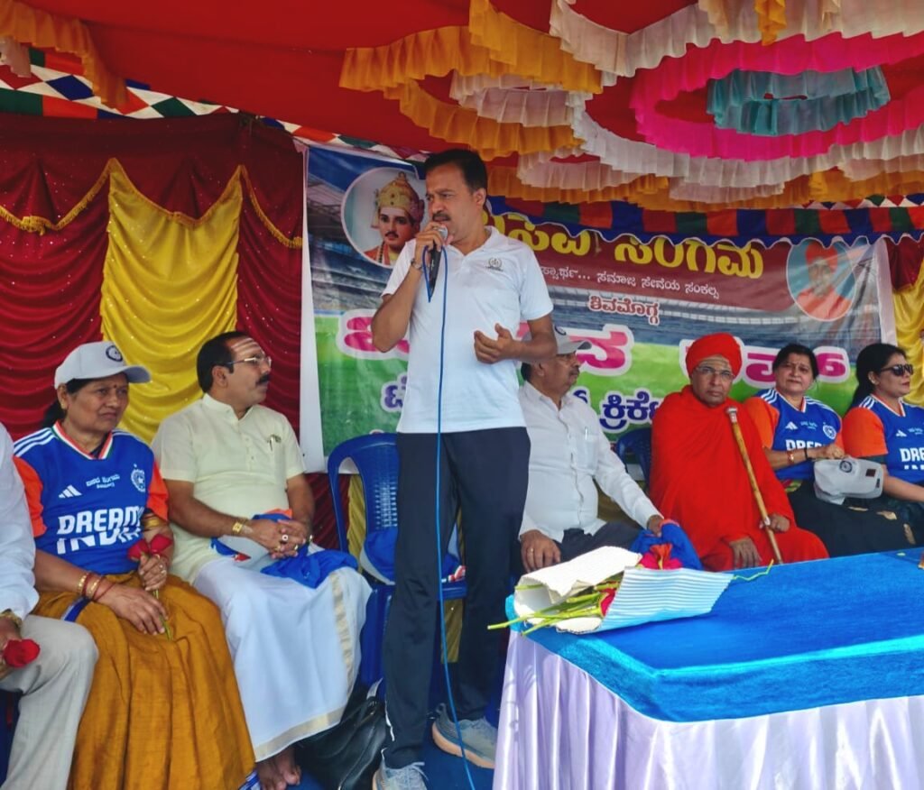 ಶಿವಮೊಗ್ಗ: ಬಸವ ಸಂಗಮ ಇವರ ವತಿಯಿಂದ ಸಹ್ಯಾದ್ರಿ ಕಾಲೇಜು ಕ್ರೀಡಾಂಗಣದಲ್ಲಿ ಆಯೋಜಿಸಲಾದ “ಬಸವ ಕಪ್” ಟೆನ್ನಿಸ್ ಬಾಲ್ ಕ್ರಿಕೆಟ್ ಪಂದ್ಯಾವಳಿ ಭಾನುವಾರ ಉತ್ಸಾಹಭರಿತವಾಗಿ ಚಾಲನೆ ದೊರೆಯಿತು. ಬೆಕ್ಕಿನಕಲ್ಮಠದ ಪೂಜ್ಯ ಶ್ರೀ ಡಾ. ಮಲ್ಲಿಕಾರ್ಜುನ ಮುರುಗರಾಜೇಂದ್ರ ಮಹಾಸ್ವಾಮೀಜಿಗಳ ದಿವ್ಯ ಸಾನ್ನಿಧ್ಯದಲ್ಲಿ ಮಾಜಿ ಶಾಸಕ ಆಯನೂರು ಮಂಜುನಾಥ್ ಹಾಗೂ ಕರ್ನಾಟಕ ರಾಜ್ಯ ಸರ್ಕಾರಿ ನೌಕರರ ಸಂಘದ ರಾಜ್ಯಾಧ್ಯಕ್ಷ ಸಿ.ಎಸ್. ಷಡಾಕ್ಷರಿ ಕಾರ್ಯಕ್ರಮವನ್ನು ಉದ್ಘಾಟಿಸಿದರು.