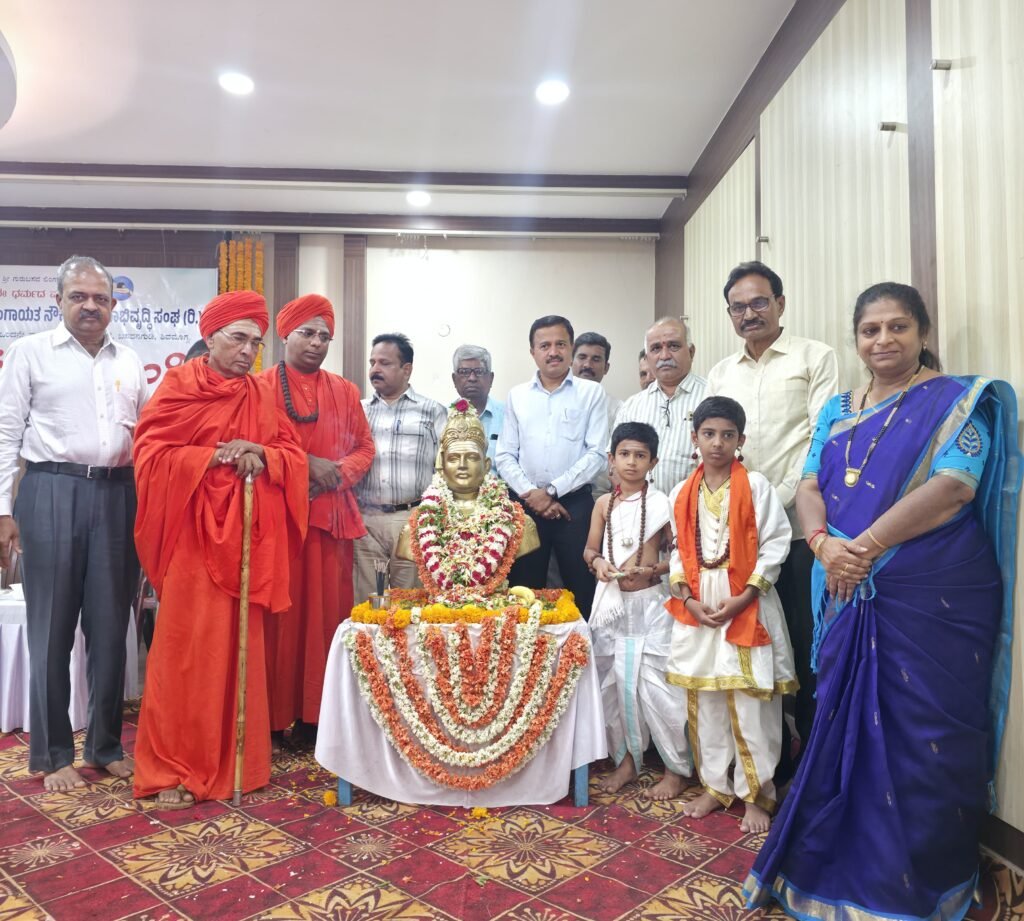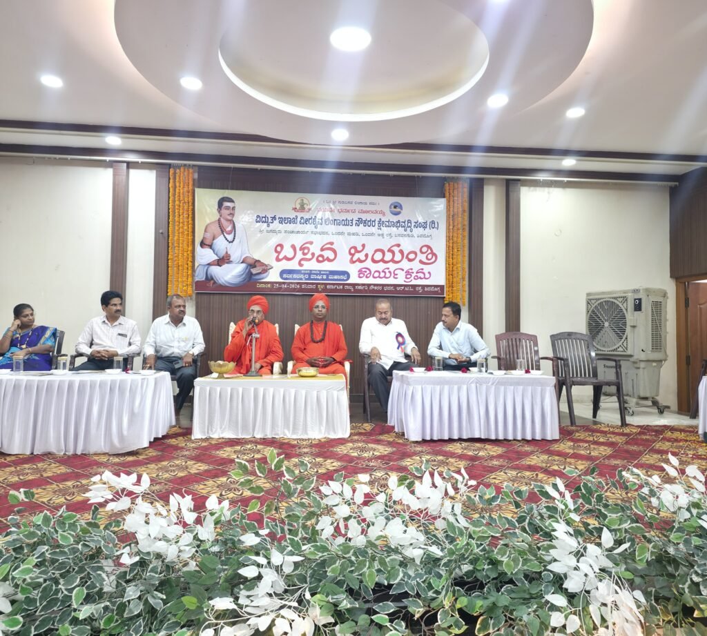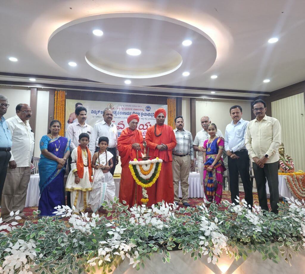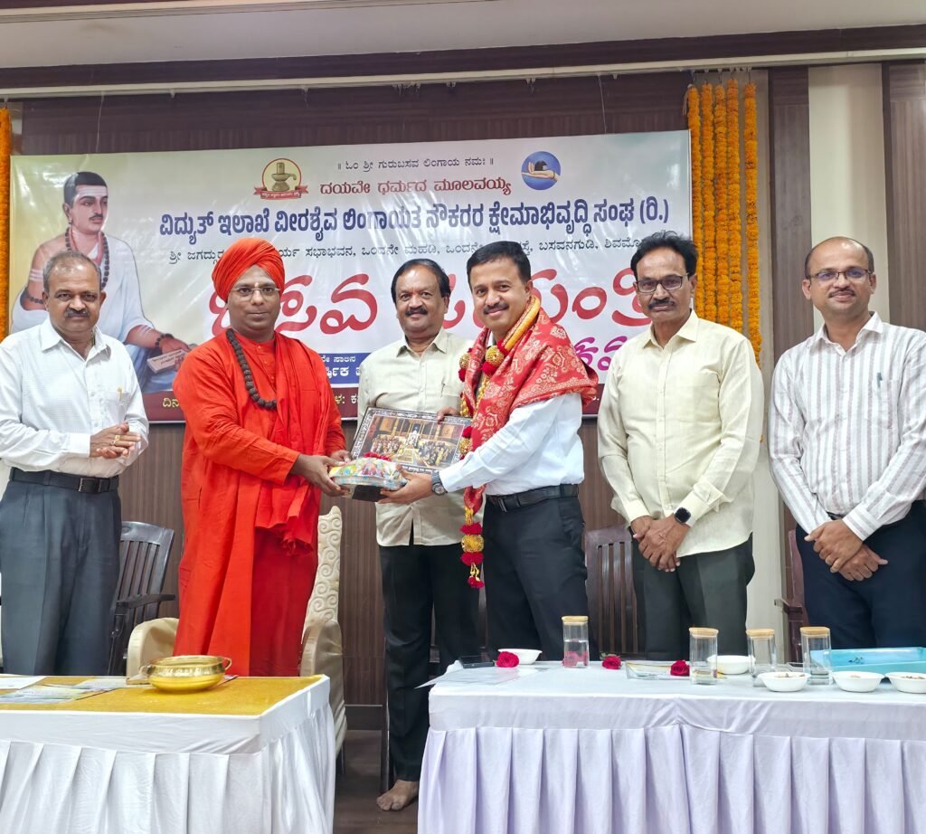 ಶಿವಮೊಗ್ಗ: ವಿದ್ಯುತ್ ಇಲಾಖೆಯ ವೀರಶೈವ ಲಿಂಗಾಯತ ನೌಕರರ ಕ್ಷೇಮಾಭಿವೃದ್ಧಿ ಸಂಘದ ವತಿಯಿಂದ ‘ಜಗಜ್ಯೋತಿ ಬಸವೇಶ್ವರರ ಜಯಂತಿ’ ಕಾರ್ಯಕ್ರಮವನ್ನು ಅತ್ಯಂತ ಭಕ್ತಿಭಾವ ಹಾಗೂ ವಿಜೃಂಭಣೆಯಿಂದ ಆಚರಿಸಲಾಯಿತು. ಮಠಾಧೀಶರ ದಿವ್ಯ ಸಾನಿಧ್ಯ ಹಾಗೂ ಗಣ್ಯರ ಉಪಸ್ಥಿತಿಯಲ್ಲಿ ನಡೆದ ಈ ಸಮಾರಂಭವು ಬಸವ ತತ್ವಗಳ ಪುನರುಚ್ಚಾರಕ್ಕೆ ಸಾಕ್ಷಿಯಾಯಿತು.