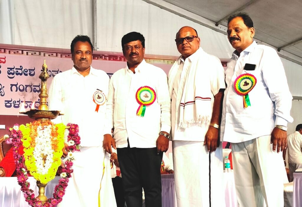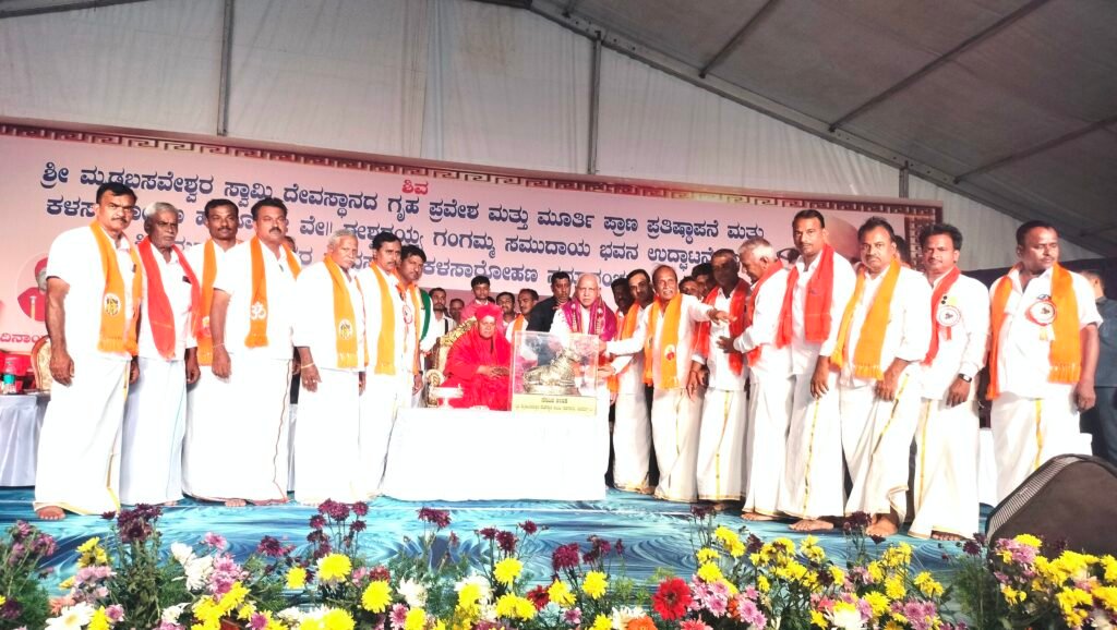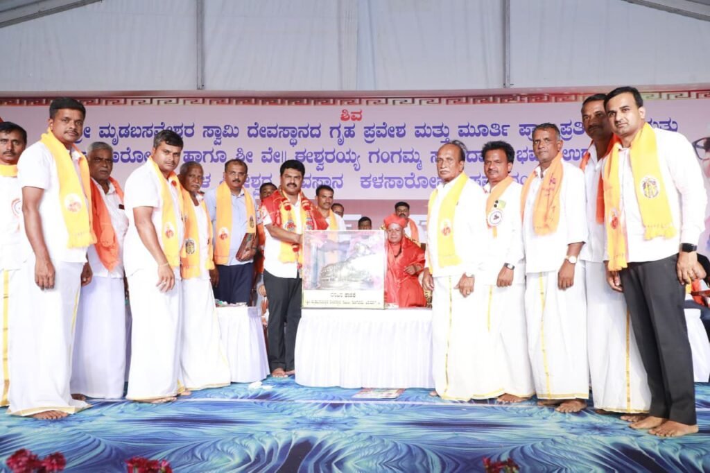 ಶಿವಮೊಗ್ಗ: ತಾಲ್ಲೂಕಿನ ಸೂಗೂರು ಗ್ರಾಮದಲ್ಲಿ ಶ್ರೀ ಮೃಡಬಸವೇಶ್ವರ ಸ್ವಾಮಿ ದೇವಸ್ಥಾನದ ಗೃಹ ಪ್ರವೇಶ, ಮೂರ್ತಿ ಪ್ರಾಣ ಪ್ರತಿಷ್ಠಾಪನೆ, ಕಳಸಾರೋಹಣ ಹಾಗೂ ನೂತನವಾಗಿ ನಿರ್ಮಿಸಲಾದ ಶ್ರೀ ವೇ.ಈಶ್ವರಯ್ಯ ಗಂಗಮ್ಮ ಸಮುದಾಯ ಭವನ ಉದ್ಘಾಟನಾ ಕಾರ್ಯಕ್ರಮವು ಭಕ್ತಿ ಭಾವ, ಶ್ರದ್ಧೆ ಹಾಗೂ ಸಂಸ್ಕೃತಿಯ ಸಮನ್ವಯದಲ್ಲಿ ಅತ್ಯಂತ ಭವ್ಯವಾಗಿ ನಡೆಯಿತು.