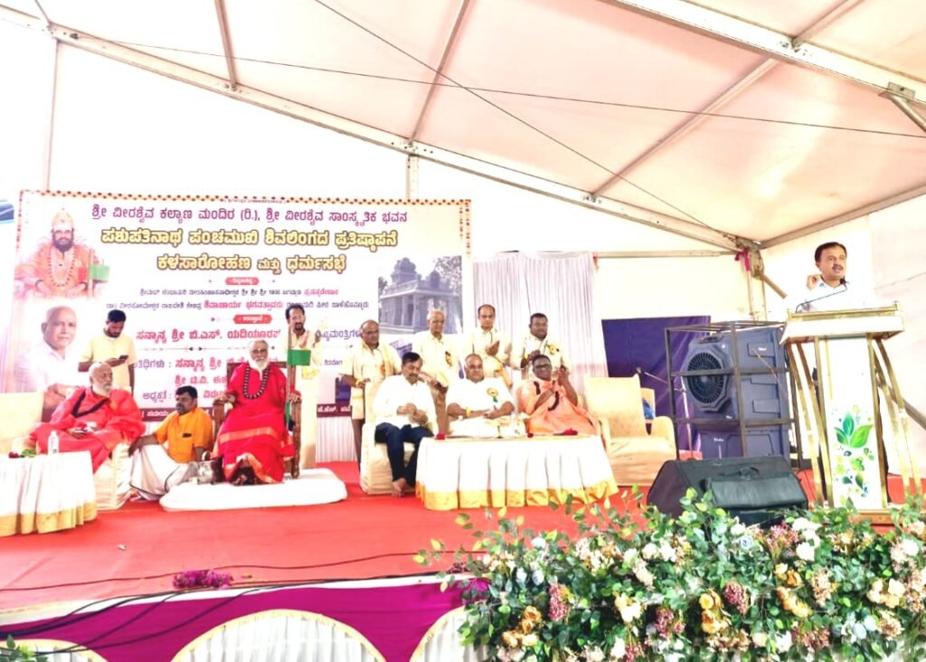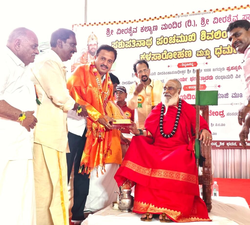 ಶಿವಮೊಗ್ಗ: ನಗರದ ಶ್ರೀ ವೀರಶೈವ ಸಾಂಸ್ಕೃತಿಕ ಭವನದಲ್ಲಿ ಪಶುಪತಿನಾಥ ಪಂಚಮುಖಿ ಶಿವಲಿಂಗದ ಪ್ರತಿಷ್ಠಾಪನೆ, ಕಳಸಾರೋಹಣ ಹಾಗೂ ಧರ್ಮಸಭೆ ಕಾರ್ಯಕ್ರಮವು ರಂಭಾಪುರಿ ಜಗದ್ಗುರುಗಳ ದಿವ್ಯ ಸಾನಿಧ್ಯದಲ್ಲಿ ಅತ್ಯಂತ ಭಕ್ತಿಭಾವ ಹಾಗೂ ವಿಜೃಂಭಣೆಯಿಂದ ನೆರವೇರಿತು.