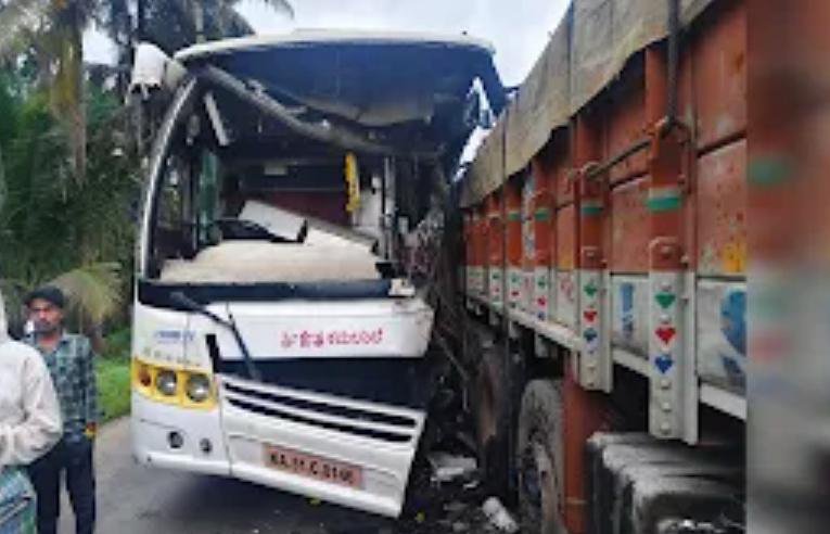 ನಿಂತಿರುವ ಲಾರಿಗೆ ಬಸ್ ಡಿಕ್ಕಿ- ಇಬ್ಬರು ಸಾವು