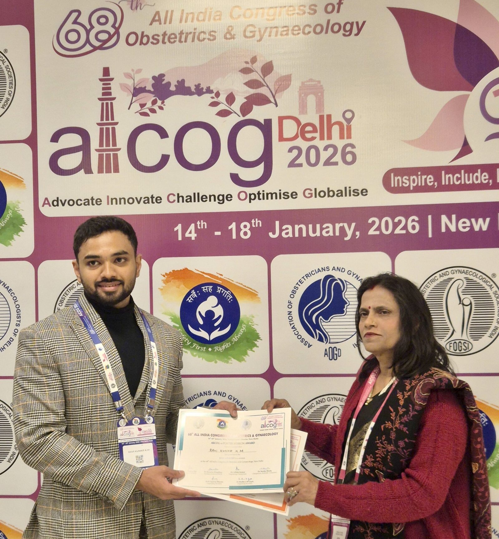 ನವದೆಹಲಿಯ AICOG ಮಹಾಸಮ್ಮೇಳನದಲ್ಲಿ ಶಿವಮೊಗ್ಗದ ರವಿ ಕುಮಾರ್ ಕೆ.ಎಂ ಅವರಿಗೆ ಇ–ಪೋಸ್ಟರ್ ಪ್ರಶಸ್ತಿ