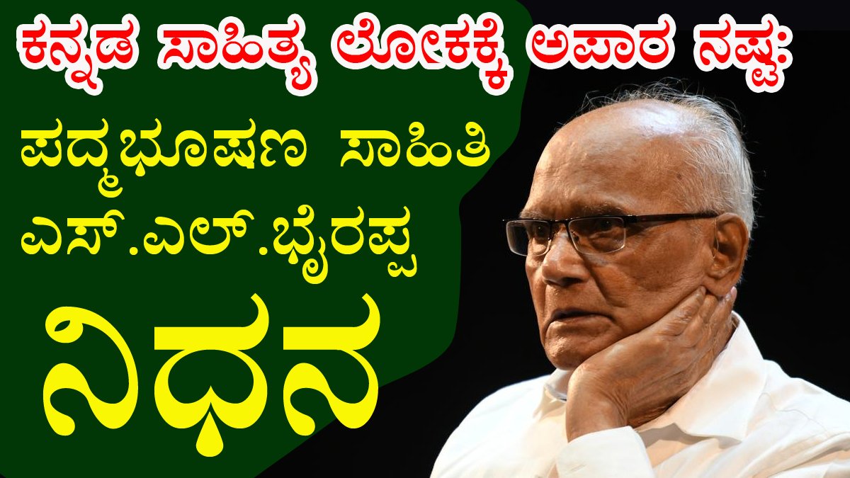ಕನ್ನಡ ಸಾಹಿತ್ಯ ಲೋಕಕ್ಕೆ ಅಪಾರ ನಷ್ಟ: ಪದ್ಮಭೂಷಣ ಸಾಹಿತಿ ಎಸ್.ಎಲ್. ಭೈರಪ್ಪ ನಿಧನ